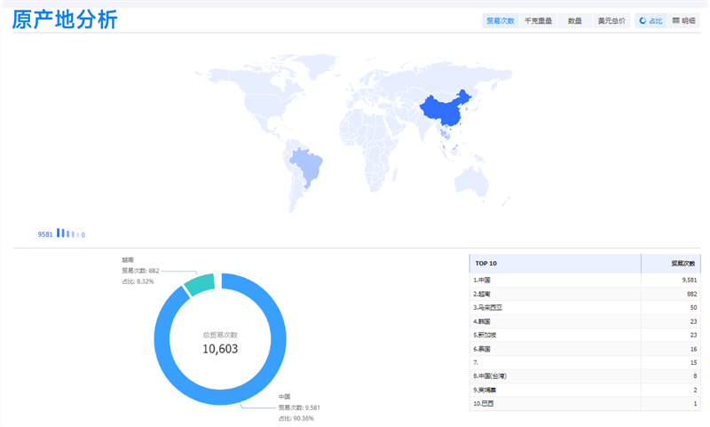 例如,利用【EVO视讯 EVO真人外贸通SaaS平台】查看家具产品的进出口贸易记录,EVO视讯 EVO真人可以比较不同国家/地区的贸易量和贸易额,分析市场的进口和出口情况。