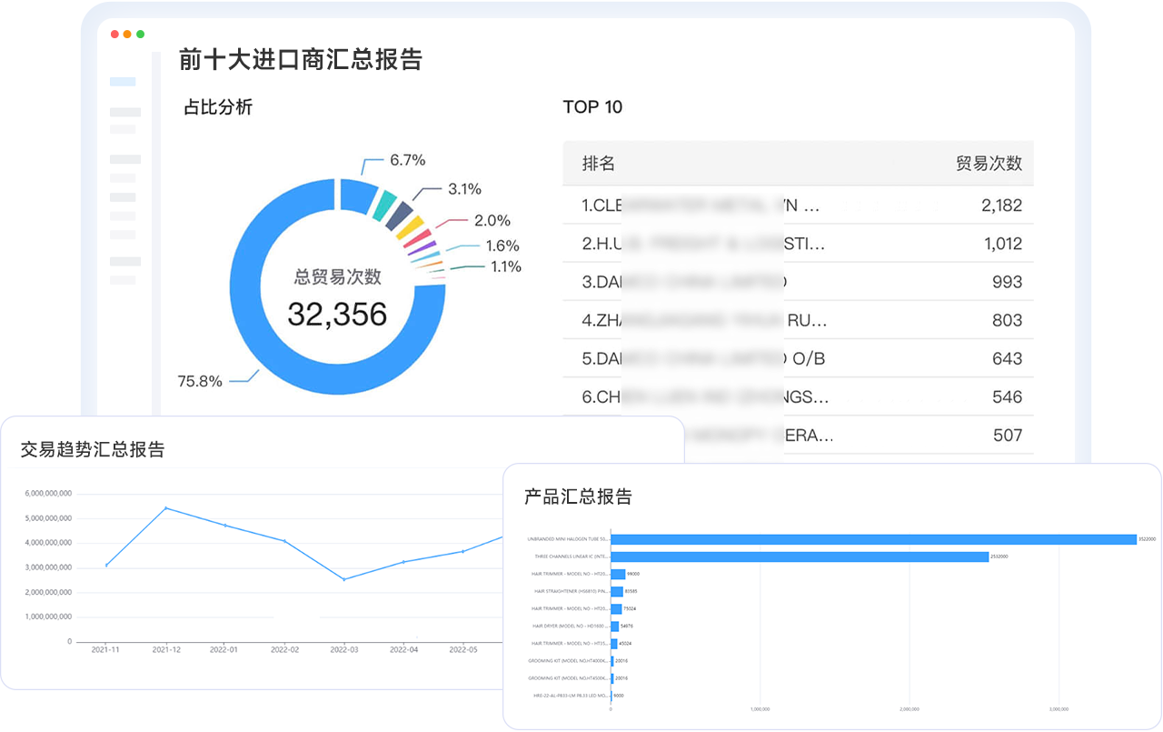 基于100亿+真实贸易数据,结合精准搜索和多元化报告功能,精准分析全球市场变化、定位高价值市场,找到新的业绩增长点。
