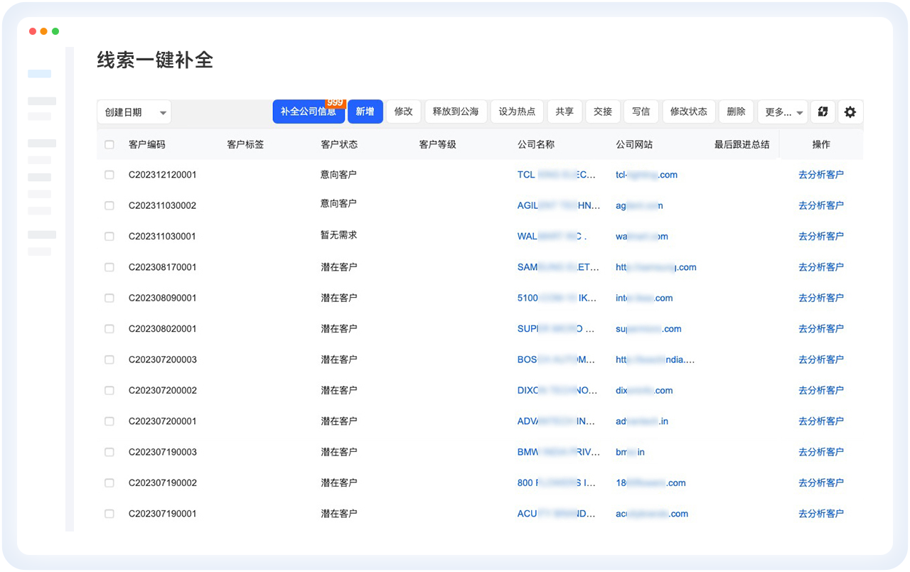 • 一键客户背调