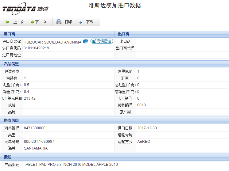 哥斯达黎加海关数据详情领取  qq: 2355729858