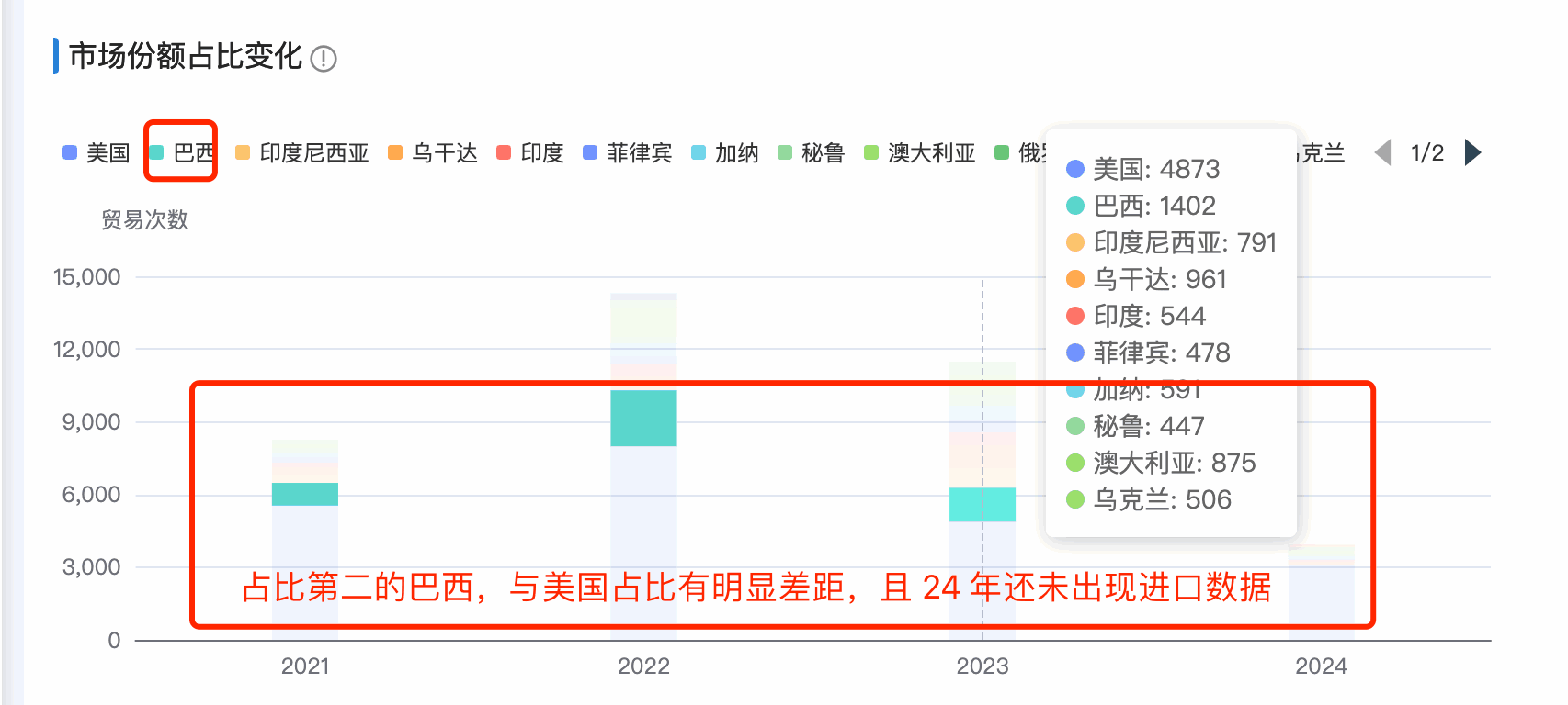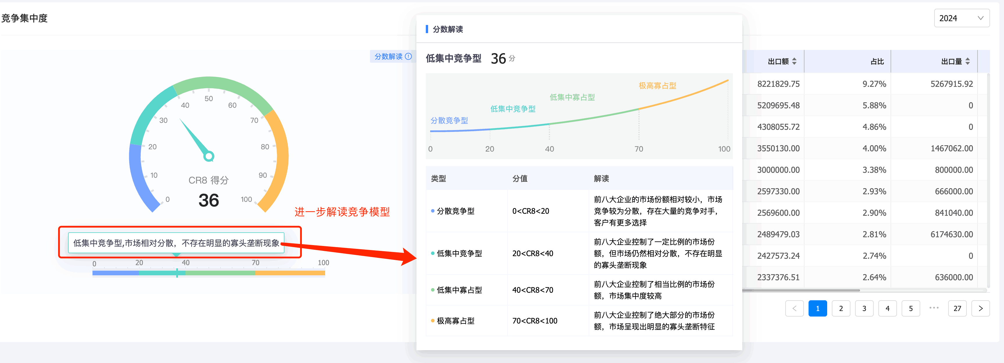 3. EVO视讯 EVO真人商情洞察竞争分析新增「竞争集中度分析」:基于行业集中度(Concentration Ratio)理论来计算目标产品竞企竞争集中度,出口目标产品前8家最大的企业所占市场份额的总和,是对整个竞争市场结构集中程度的测量指标